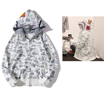 Sudadera con capucha doble de algodón 100% para hombre de marca de moda bordado tiburón cabeza de tigre camuflaje cárdigan suelto capucha con cremallera