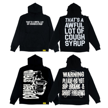 Sudadera con capucha clásica de algodón 100% negro con estampado de letras de advertencia de jarabe para la tos de alta calidad