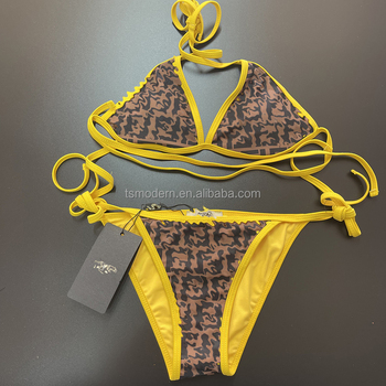 Logotipo personalizado das mulheres 2 peças de banho Mini biquíni conjunto com logotipo frontal Tanga Bikini Top e Bottom
