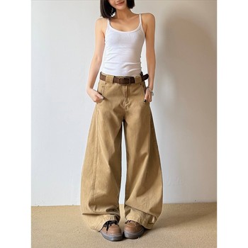 Das mulheres dos homens na moda perna reta American Casual tridimensional corte silhueta lavado solto perna larga cortina assoalho-comprimento
