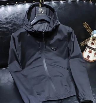 Sonbahar Streetwear erkek moda rahat ceket dokuma kumaş fermuar kapatma mektup desen tarzı ile kapüşonlu ceket